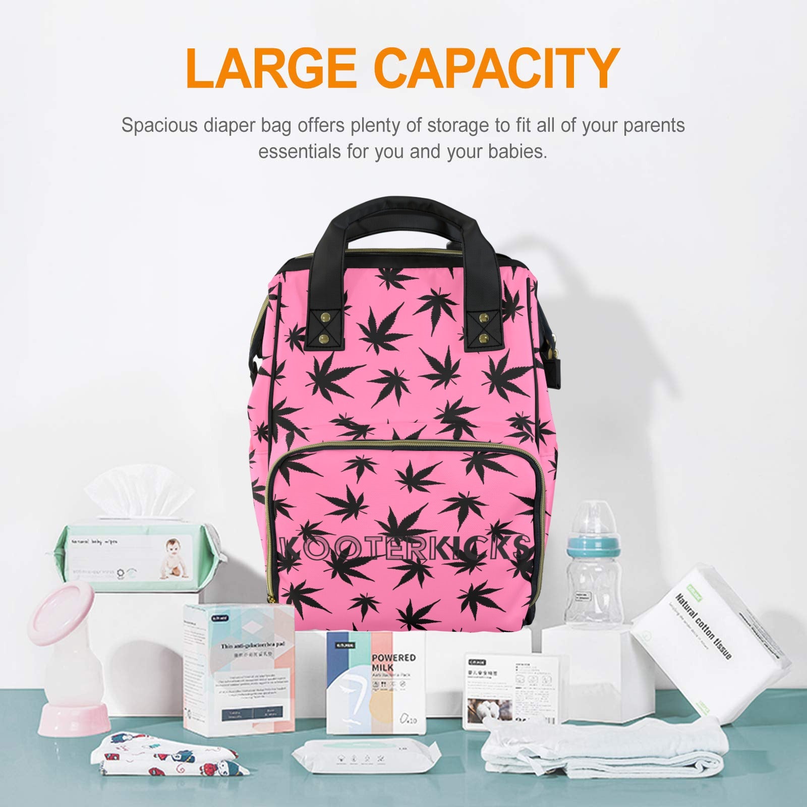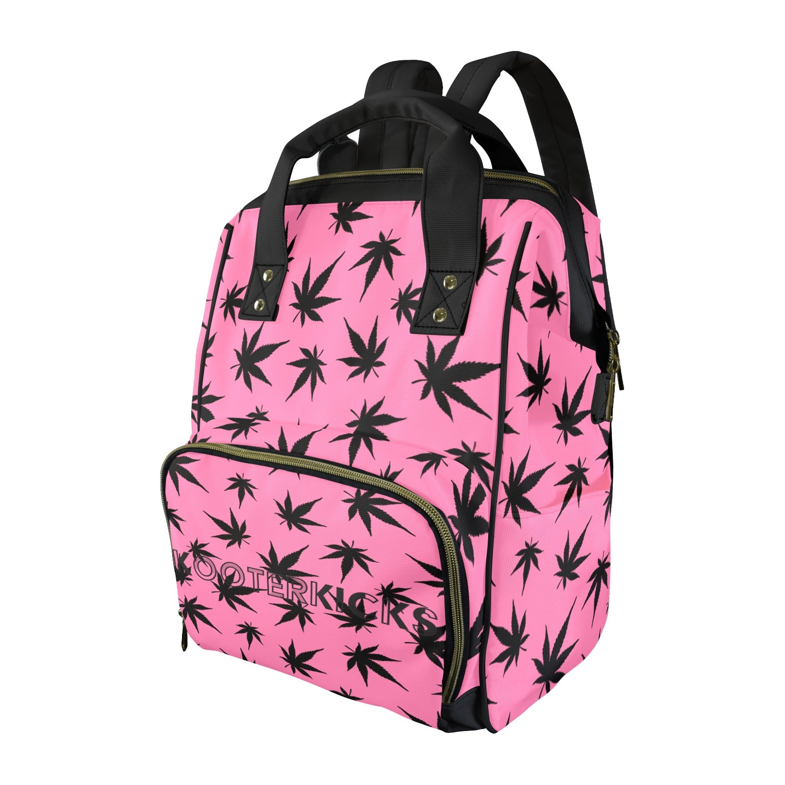 Pink Black Pot Marijuana Leaves Diaper Bag Backpack
